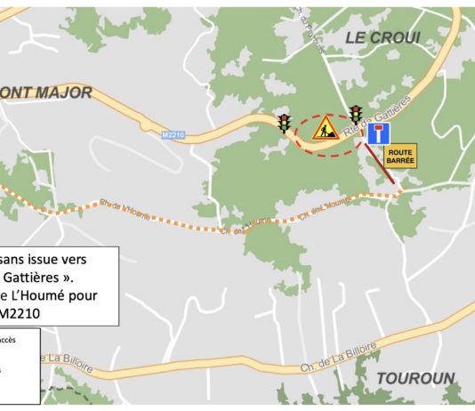 La circulation sera interrompue au chemin de l’Houmé-Peyrouas, au niveau de la sortie Route de Gattière...