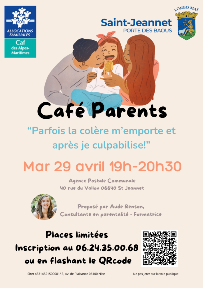 Mardi prochain, le mardi 29 avril de 19h à 20h30, rdv à St Jeannet pour le 5eme café parent soutenu par la CAF et la mairie de St Jeannet.