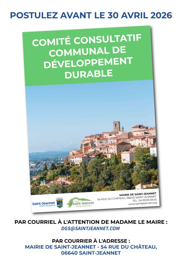 par courrier à l’adresse : Mairie de Saint-Jeannet – 54 rue du château – 06640 SAINT-JEANNET